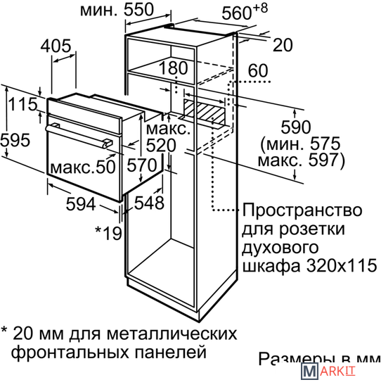 | Размеры ниши для встраивания |