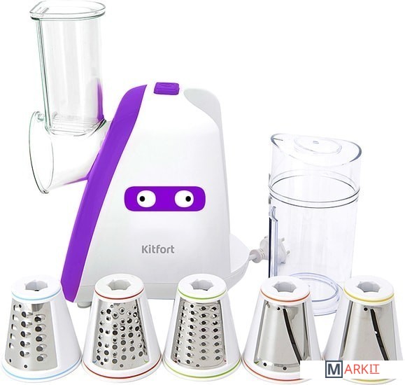 Электрическая тёрка Kitfort КТ-1318 предназначена для измельчения и шинковки овощей, фруктов и других продуктов в домашних условиях. Электрические терки безопасны и исключают возможность микротравм.В комплекте есть 3 тёрочных и 2 шинковочных ножа. Для хранения быстросменных лезвий предназначен съёмный стакан с крышкой, установленный сзади.