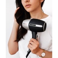 Это очень мощный фен для своих компактных размеров (16 см). Внутренние элементы фена покрыты турмалином – природным минералом, который является естественным источником отрицательных ионов, препятствует электризации волос, сохраняет их естественный уровень влажности. Благодаря DC-мотору этот фен очень легкий. Предусмотрена функция холодного обдува для фиксации прически.