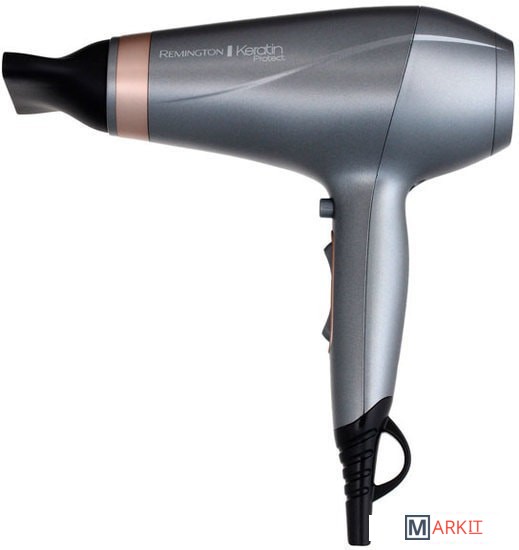 Глянцевые и здоровые волосы в тренде, но иногда, регулярные укладки волос имеют разрушительный эффект сухих волос.Если вы регулярно сушите волосы при высокой температуре, то результатом могут стать сухие и ломкие волосы с секущимися кончиками. Фен Keratin Protect был специально разработан для защиты волос от разрушительного тепла во время сушки.Благодаря фену Keratin Protect вы можете достичь салонных стандартов при сушке волос, а также в 3 раза более защищенных от повреждения теплом*. Вам больше не нужно идти на компромисс в отношении здоровья ваших волос!Кондиционирующее кольцо фена Keratin Protect обогащено Кератином и маслом Миндаля; микрокондиционеры медленно высвобождается и переносится на волосы во время стайлинга, оставляя их сильными, здоровыми и упругими. Гладкие. Прочные. Стильные.Мощность фена Keratin Protect 2200 Вт, выполнен в трендовых оттенках серого и розового золота, обладает керамической решеткой для быстрого и равномерного высвобождения тепла и обладает ионным генератором, который производит на 90%* больше ионов, которые запечатывают влагу в волосах для блеска, без спутывания. Фен обладает долговечным AC мотором для быстрой и эффективной сушки, а также 5 настройками для персонализированного стайлинга.