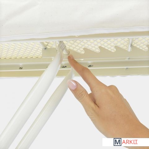 Модель с широкой рабочей поверхностью – быстрое и удобное глажение (124х45 см).Отсутствие деформации и прогибов сетки – запатентованная конструкция.Регулировка по высоте в 7 положениях (75-98 см).Прочная подставка подходит для паровых систем и утюгов (макс. 40x22 см).Чехол из 100% хлопка с упругой подкладкой.Идеально натянутый чехол – затягивающий шнур с фиксатором + стяжки.Устойчивая столешница – прочный каркас на 4 ножках (диаметр 25 мм).Защитные нескользящие колпачки – устойчивость и защита от царапин.Предохранительный фиксатор от случайного складывания доски.Фиксации доски в сложенном положении.