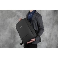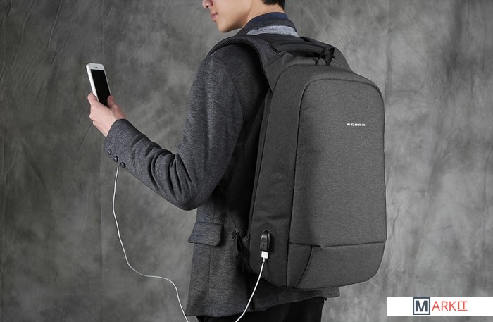 Антикражный рюкзак с большим количеством различных отделений - отличный выбор для путешествий. Особый материал со стекловолокном в своём составе устойчив к порезам. Вместительное отделение с отсеками для ноутбука и планшета. Потайной карман для ценностей. Предусмотрена возможность крепления рюкзака на чемодане.