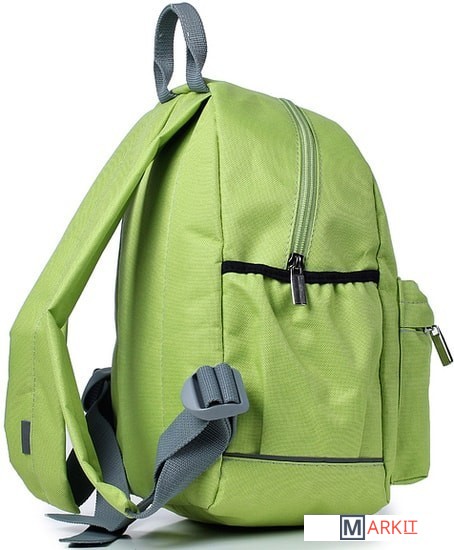 Рюкзак из синтетической ткани закрывается на застежку-молнию, с короткой ручкой, с двумя плечевыми ремнями, с карманом на передней стенке закрывающимся на застежку-молнию, с двумя боковыми открытыми карманами на резинке, со световозвращающими элементами на карманах и плечевых ремнях, с удобной уплотненной задней стенкой. Рюкзак частично на подкладке.
