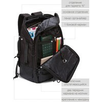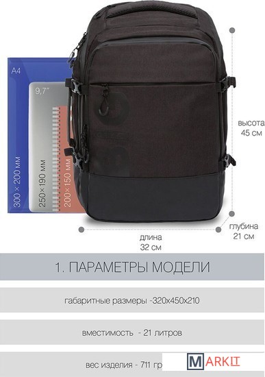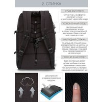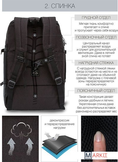 Рюкзак молодежный,два отделения,карман на молнии на передней стенке,боковой карман,две пары боковых стяжек на фастексах,внутренний держатель для ключей - фастекс,внутренний карман для электронных устройств,внутренний составной пенал-органайзер,укрепленная спинка,карман быстрого доступа в верхней части рюкзака,карман быстрого доступа на задней стенке,дополнительная ручка-петля,мягкая укрепленная ручка,нагрудная стяжка-фиксатор,укрепленная ручка,укрепленные лямки,предусмотрено крепление к чемодану