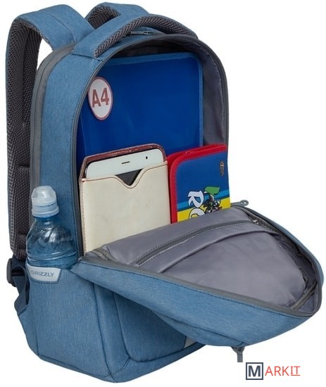 Молодежный рюкзак Grizzly специально разработан для учащихся средней и старшей школы. Но подойдет он и для студентов, и для взрослых мужчин. В основном отделении есть карман для электронных устройств. Дополнительное отделение специально предназначено для ноутбука 15". Карман быстрого доступа в верхней части рюкзака оснащен съемным держателем для ключей. В боковых карманах можно разместить бутылочку с водой или другие мелочи. Анатомическая спинка, нагрудная стяжка и удобные лямки позволяют равномерно распределять нагрузку на спину и плечи. У рюкзака удобная ручка для переноски, дополнительная ручка-петля и укрепленное дно. Материал рюкзака с водо- и грязеотталкивающей пропиткой. Двунаправленные реверсные молнии с брендированными пуллерами на замках позволяют легко открывать и закрывать рюкзак. Рюкзак имеет прочную фирменную подкладку GRIZZLY. Светоотражающие элементы с четырех сторон создают дополнительную безопасность в условиях недостаточной видимости.