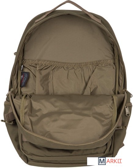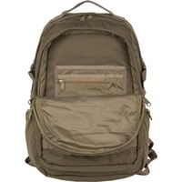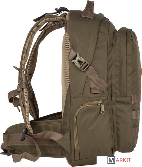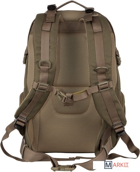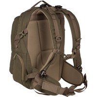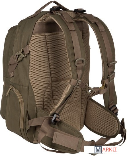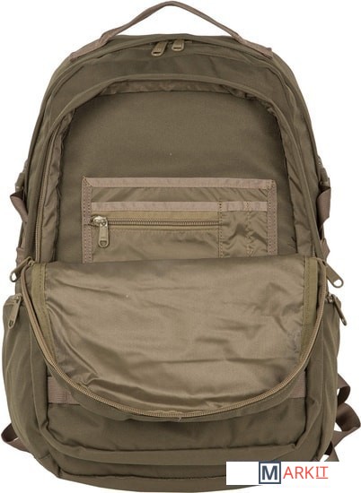 Рюкзак имеет два основных отделения, которые закрываются на двухстороннюю молнию. Внутри первого есть открытый карман, во втором – небольшой открытый кармашек и организационная панель. На передней стенке прорезной карман на молнии для мелких вещей, которые должны быть под рукой. По бокам небольшие кармашки на молнии. Широкие лямки анатомической формы регулируются для большего комфорта и имеют грудную стяжку. У рюкзака жесткая ортопедическая спинка с сетчатым уплотнителем, который обеспечивает отличную вентиляцию. Дополнительный поясной ремень снижает нагрузку на позвоночник, регулируется по длине. По бокам у рюкзака есть утяжки с фастексами. На переднем кармане нашиты стропы, за них в походе можно закрепить дополнительное оборудование.
