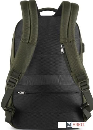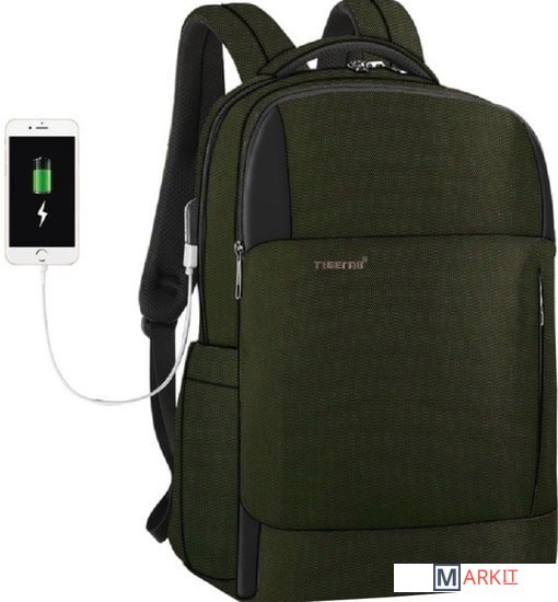 Рюкзак TIGERNU T-B3906 выполнен в сдержанном мужском стиле и единой цветовой гамме. Модель имеет влагоустойчивую поверхность и защищенное от воды дно. Мягкая спинка пропускает воздух благодаря сетчатой поверхности. Мягкие широкие лямки S—образной формы удобно лежат на плечах и регулируются по длине. Верхняя ручка дополнительно прошита несколькими швами для надежности.Внутри рюкзака T-B3906 предусмотрено два вместительных отделения для книг, канцелярии, мобильных и компьютерных гаджетов и аксессуаров, одежды и даже ноутбука. Он может расположиться в специальном кармане, который фиксируется эластичной лентой. Один небольшой карман на молнии находится на фронтальной части рюкзака. Еще два — в спинке и на одной из лямок. Туда можно положить ценные вещи. В модели TIGERNU имеются два боковых кармана для бутылок с водой или зонта. В спинке находится крепежная лента для закрепления рюкзака на ручке дорожной сумки. На одной из лямок — крепежный элемент для очков. Сбоку рюкзака расположился внешний USB-вход для простой подзарядки гаджетов на ходу