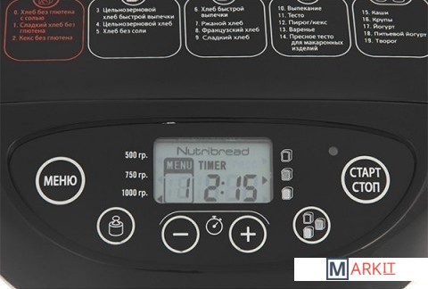 | Регулировка веса выпечки | (500/750/1000 г) |