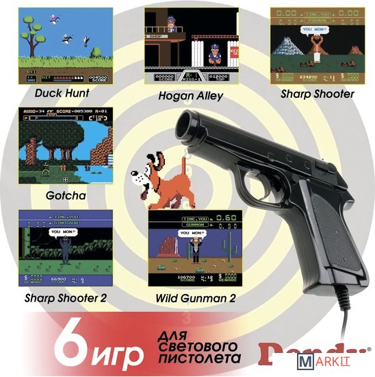 | Полная комплектация | - игровая консоль- два геймпада- световой пистолет- AV-кабель- документация |