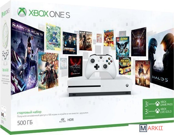 • Консоль Xbox One S• Беспроводной геймпад• Кабель HDMI• Кабель питания• Комплект батареек• Инструкция• Подписка Xbox Live Gold (3 мес.)• Подписка Xbox Game Pass (3 мес.)