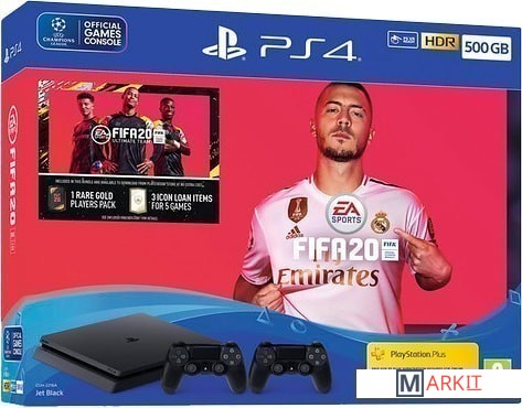 • Консоль PlayStation 4 Slim• Беспроводной геймпад Dual Shock 4 (2 шт.)• Моногарнитура• Кабель питания• HDMI-кабель• USB-кабель• Подписка PS Plus (14 дн.)• FIFA 20• Внутриигровой контентВертикальная подставка в комплект не входит! |