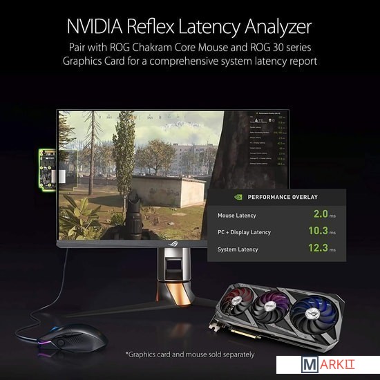 Режим Reflex Low Latency Mode, если он поддерживается в играх, обеспечивает ощущение игры "на кончиках пальцев" и превосходную динамику, уменьшая задержку между движением мыши и реакцией на экране монитора.Благодаря непосредственной интеграции с игрой режим Reflex Low Latency оптимизирует работу игрового движка для своевременного завершения рендеринга, устраняя очередь рендеринга на GPU и снижая нагрузку на процессор. Это позволяет снизить задержку системы значительно эффективнее существующих технологий драйвера, таких как режим низкой задержки NVIDIA.Reflex Latency Analyzer распознает клики мышью и затем измеряет время до изменения соответствующих пикселей (например вспышки при выстреле) на экране. В комплект поставки монитора входит удобное крепление, которое освободит на столе больше места для периферии. Оно включает в себя кронштейн, позволяющий закрепить устройство на краю практически любой плоской поверхности. Стойка PG259QNR легко входит в специальную нишу кронштейна.ROG Swift 360 Hz PG259QNR идеально подходит для динамичных киберспортивных игр, например Counter-Strike: Global Offensive, Rainbow Six: Siege, Overwatch и Fortnite. Порой победу от поражения отделяет доля секунды, это особенно справедливо для киберспортивных соревнований. Благодаря частоте обновления экрана в 360 Гц обеспечивается сверхплавная прорисовка динамичных сцен, что позволяет игрокам лучше отслеживать цели, а также низкую латентность для мгновенной реакции на события в игре.Технология адаптивной синхронизации G-Sync устраняет эффект «разрыва кадра», обеспечивая плавное изображение на любой частоте обновления экрана, вплоть до 360 Гц.Специальное покрытие нижней части экранной рамки уменьшает интенсивность нежелательных бликов.Монитор наделен встроенной атмосферной подсветкой Aura, визуальные эффекты которой могут синхронизироваться с другими Aura-совместимыми компонентами и периферийными устройствами (технология Aura Sync).Конструкцией монитора предусмотрена возможность аккуратной прокладки кабелей.Подставка новой конструкции позволяет поставить клавиатуру и мышь поближе к монитору. Таким образом, у пользователя имеется больше пространства для удобного расположения различных игровых аксессуаров.В мониторе используется радиатор с большой площадью теплорассеивания, который гарантирует защиту от перегрева во время марафонских игровых сессий.Поскольку данный монитор ориентирован в первую очередь на геймеров, в нем реализованы специальные функции, предназначенные для любителей компьютерных игр и разработанные с их участием. Они активируются с помощью кнопки GamePlus.