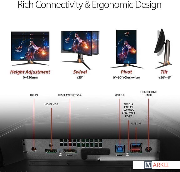 Метки игровой от 144 Гц, с временем отклика 1 мс, с поддержкой HDR, с регулировкой по высоте