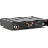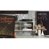 Hegel H95 — интегральный усилитель, пришедший на смену популярной модели H90. H95 использует два тороидальных трансформатора. Первый, большой, питает весь усилитель и ЦАП. А второй, малый, служит для включения и выключения усилителя. В режиме ожидания H95 потребляет только 1 Вт. Малый трансформатор позволяет включить усилитель со столь малым потреблением мощности без искажения качества звука.Наибольшее отличие между усилителями в цифровой части. H95 получил новую стриминговую плату и совершенно новый ЦАП. Новая плата привносит больше функций, например поддержку Spotify Connect. В усилители H95 используется тот же ЦАП, что и в моделях H120 и H190. Это более дорогая плата с более качественным аналоговым каскадом. Здесь также используется чип от AKM с улучшенной тактовой частотой.