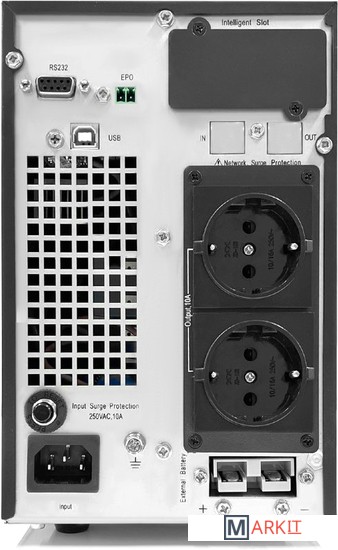 ИБП с двойным преобразованием напольного исполнения 1000 ВА / 900 Вт без встроенных АКБ, ЗУ 10А напряжение АКБ 36 VDC (3 АКБ), 2 розетки Schuko, SNMP слот, USB, RS232, EPO