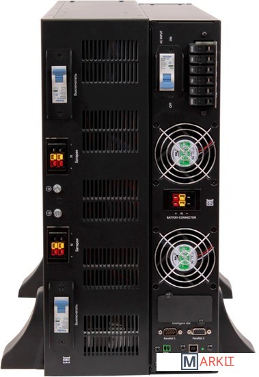 ИБП с двойным преобразованием Rack Tower универсального исполнения 2U 10000 ВА / 9000 Вт без встроенных АКБ, ток заряда 10А напряжение АКБ ±96/108/120 VDC (16/18/20 АКБ), клеммный терминал, SNMP слот (опция), USB, RS232, EPO, порты параллельного подключения