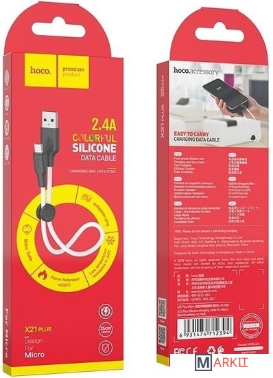 Markit » Кабели, адаптеры, разветвители » Кабель Hoco X21 Plus USB - Micro-USB (0.25 м, белый)