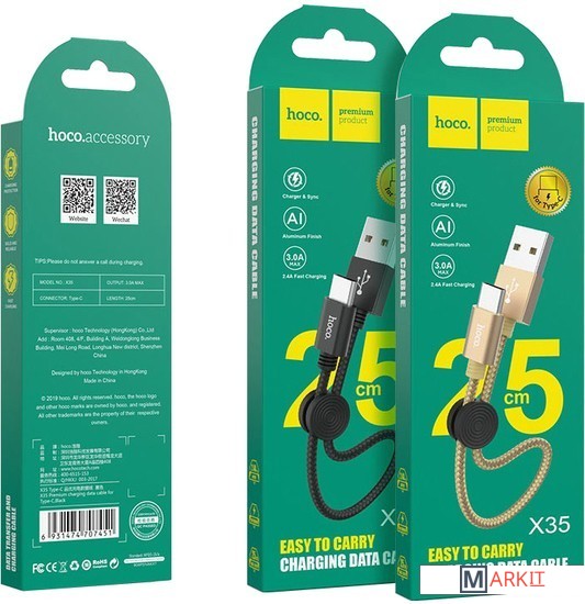 Markit » Кабели, адаптеры, разветвители » Кабель Hoco X35 USB Type-A - USB Type-C (0.25 м, черный)