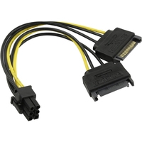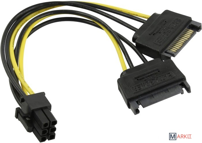 Переходник для дополнительного питания видеокарты через 6-пиновый разъем от 2 коннекторов SATA блока питания компьютера.