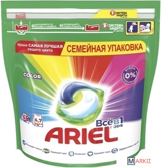 Markit » Средства для посудомоечных машин » Капсулы для стирки Ariel Все в 1 Pods Color (45 шт)