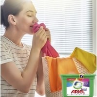 Капсулы для стирки Ariel Всё в 1 содержат три действующих компонента, которые эффективно очищают, выводят пятна и делают вашу одежду ярче. Храните в недоступном для детей месте.