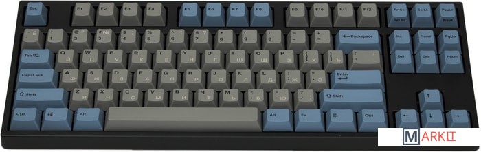 Тип: линейныйСила нажатия: 45 грамм (легкие)Длина пути: 4 мм (2 мм до срабатывания)Данная модель выполнена в сочетании пурпурно-фиолетового, серого и чёрного цветов, расцветка обязательно понравится любителям сочных, но приглушённых красок. Клавиатура собрана добротно и монолитно, а сочетание высококачественных double-shot PBT клавиш с переключателями Cherry MX и звукопоглощающей подложкой позволяет сделать печать на клавиатуре максимально тихой (насколько это возможно для механики). Mini-USB порт спрятан в центре под корпусом, а на самой клавиатуре имеются центральная и две боковые канавки под кабель.Клавиатура поддерживает сочетание клавиш для регулировки громкости и управления музыкой, также имеется возможность переключения между 6KRO и NKRO.DIP-переключатели на задней панелиДают возможность поменять местами функции кнопок Ctrl и Caps Lock, Windows и Alt, Windows и Fn или отключить Windows.Звукопоглощающая подложкаПоглощает звуки при нажатии, делая процесс печати более тихим по сравнению с обычными механическими клавиатурами.Низкопрофильные клавиши Step-Sculpture2Данные клавиши заметно ниже и имеют оптимальный угол наклона, из-за чего, по отзывам, печатать приятнее и комфортнее, чем на более высоких клавишах.Клавиатура совместима с Mac OSFN-слой работает (кроме клавиш F6, F8, F9), а поменять местами клавиши-модификаторы можно в системных настройках. Проверено с MAC OS 10.13Функция Full N-key Rollover по USB (NKRO)Позволяет нажимать одновременно неограниченное количество клавиш. Для печати идеально подойдет как 6KRO, так и NKRO, независимо от вашей скорости. Для игр NKRO будет плюсом и неважно, нажимаете ли вы больше 6 кнопок или нет, поскольку, играя в любую игру, вы можете случайно нажать пару лишних клавиш и из-за этого клавиатура имеет шанс не среагировать на нажатие, которое вы хотели совершить изначально. Имеется возможность переключения между NKRO и 6KRO через FN сочетания.