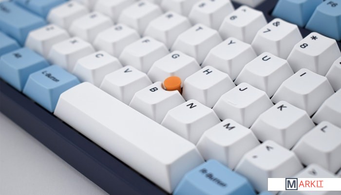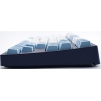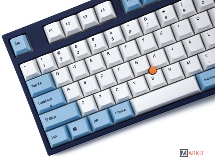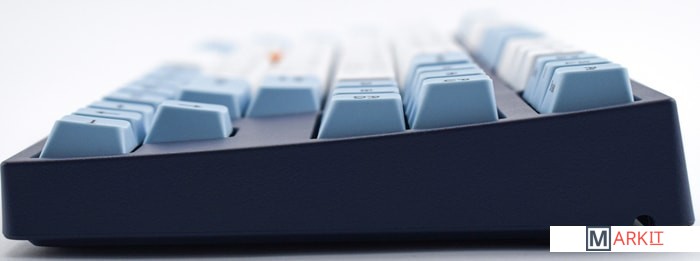 КЛАВИАТУРА БЕЗ КИРИЛЛИЦЫТип: тактильный Сила нажатия: 55 грамм (средние)Длина пути: 4 мм (2 мм до срабатывания)Данная модель представлена в тёмно-синем окрасе с белыми и светло-голубыми клавишами, расцветка выглядит свежо и воздушно. Клавиатура собрана добротно и монолитно, а сочетание высококачественных PBT клавиш с переключателями Cherry MX и звукопоглощающей подложки позволяет сделать печать на клавиатуре максимально тихой (насколько это возможно для механики). Mini-USB порт спрятан в центре под корпусом, а на самой клавиатуре имеются центральная и две боковые канавки под кабель.Уникальная для клавиатур Leopold фишка: теперь, если у вас нет под рукой мыши, клавиатура сможет взять её обязанности на себя. Указательный стик позволяет перемещать курсор, а для левой и правой кнопок мыши с обеих сторон пробела расположились специальные клавиши.Клавиатура поддерживает сочетание клавиш для регулировки громкости и управления музыкой, также имеется возможность переключения между 6KRO и NKRO.DIP-переключатели на задней панелиДают возможность поменять местами функции кнопок Ctrl и Caps Lock, Windows и Alt, Windows и Fn или отключить Windows.Звукопоглощающая подложкаПоглощает звуки при нажатии, делая процесс печати более тихим по сравнению с обычными механическими клавиатурами.Низкопрофильные клавиши Step-Sculpture2Данные клавиши заметно ниже и имеют оптимальный угол наклона, из-за чего, по отзывам, печатать приятнее и комфортнее, чем на более высоких клавишах.Клавиатура совместима с Mac OSFN-слой работает (кроме клавиш F6, F8, F9), а поменять местами клавиши-модификаторы можно в системных настройках. Проверено с MAC OS 10.13Функция Full N-key Rollover по USB (NKRO)Позволяет нажимать одновременно неограниченное количество клавиш. Для печати идеально подойдет как 6KRO, так и NKRO, независимо от вашей скорости. Для игр NKRO будет плюсом и неважно, нажимаете ли вы больше 6 кнопок или нет, поскольку, играя в любую игру, вы можете случайно нажать пару лишних клавиш и из-за этого клавиатура имеет шанс не среагировать на нажатие, которое вы хотели совершить изначально. Имеется возможность переключения между NKRO и 6KRO через FN сочетания.