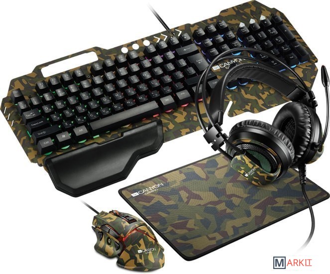клавиатура + мышь с ковриком + наушники |