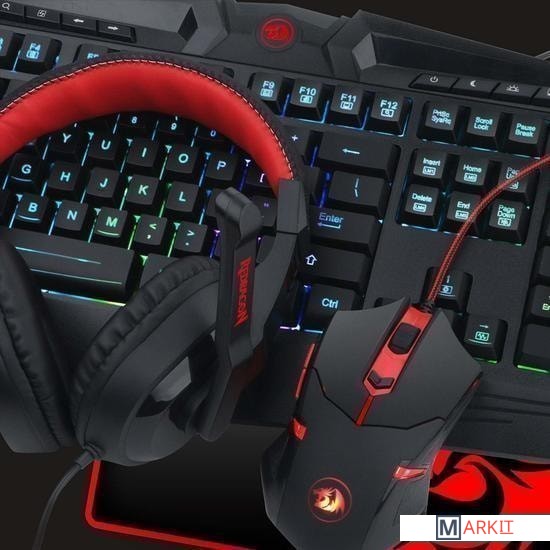 клавиатура + мышь с ковриком + наушники |