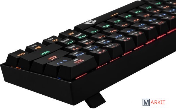 Укороченный и стильный корпус с прекрасным функционалом для профессионалов, экономящих место на рабочем или игровом столе. Тихие механические переключатели OUTEMU RED, ударопрочная влагоустойчивая конструкция с регулируемой радужной подсветкой, аппаратная блокировка клавиши WIN во время игры.Программируемая RGB подсветкаВлагоустойчивая конструкция клавиатуры