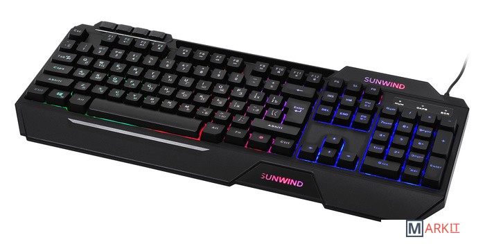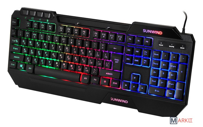 Клавиатура SunWind SW-K515G представляет собой стильный проводной вариант для геймеров профессиональных и начинающих. Ее отличает яркость, динамичность дизайна, индивидуальность и узнаваемость.Отличительные особенности:полный размер;наличие накладок для удобного расположения кистей рук во время игры;дополнительные мультимедийные кнопки;длинный кабель подключения.Корпус выполнен в черном цвете, имеет стильный молодежный дизайн с острыми углами и ребрами жесткости, с четкой геометрией. Все современные модные тенденции нашли свое воплощение. Зональная подсветка придает привлекательности. Ударопрочный пластик подчеркивает качество сборки. Детали плотно прилегают друг к другу, не оставляя лишних зазоров.Механический тип устройства клавиш гарантирует быстрый отклик и плавное нажатие. Металлические переключатели и пружины повышают надежность конструкции. Длительная работа не вызывает мышечного утомления. Цвет букв прозрачный, через них проникает свет от подсветки и выгодно выделяет их на общем фоне. Эргономика продумана до мелочей.