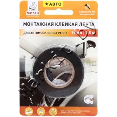 Markit » Товары для упаковки и маркировки » Клейкие ленты » Клейкая лента монтажная Милен 19мм x 1,5м для автомобильных работ