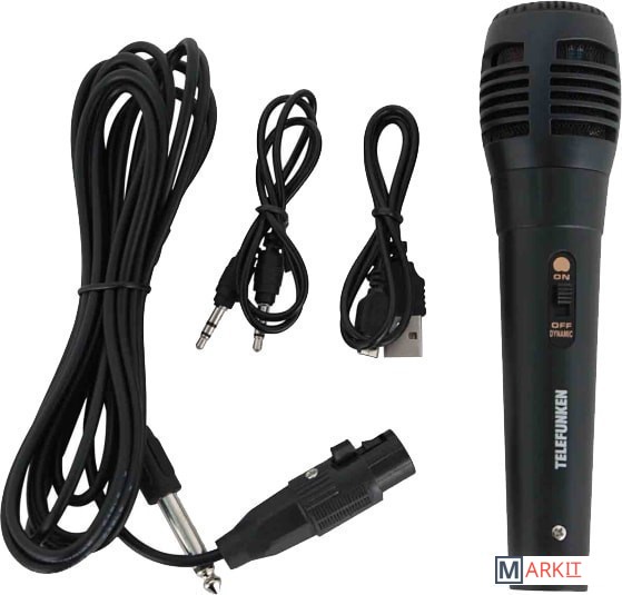 - пульт ДУ- проводной микрофон- кабель для зарядки- AUX кабель- документация |