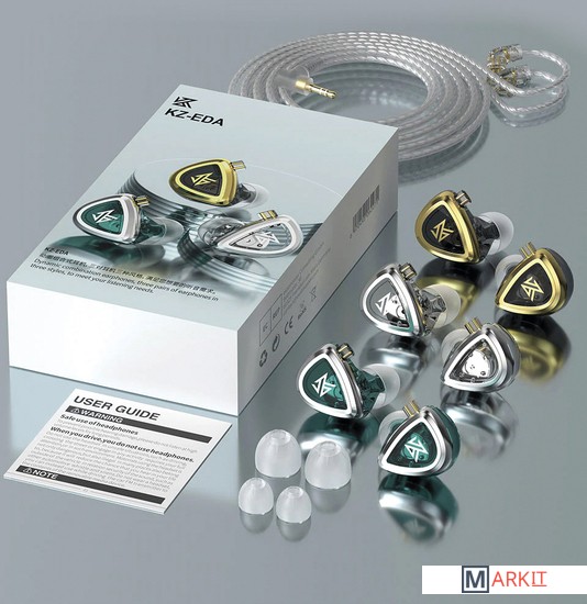 Комплект из трех пар динамических внутриканальных наушников.В первой паре акцент сделан на глубокий бас. Вторые наушники более сбалансированные, а третьи - с упором на высокое разрешение.