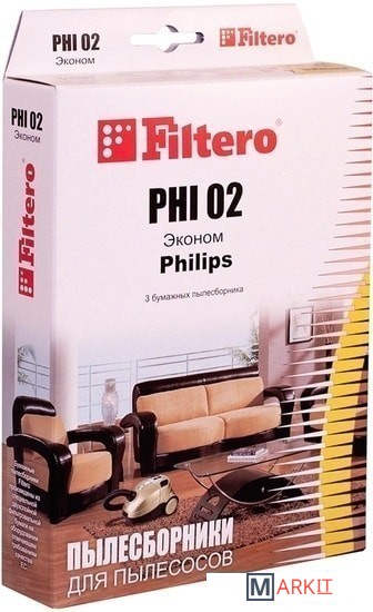 Markit » Аксессуары для пылесосов, пароочистителей » Комплект одноразовых мешков Filtero PHI 02 Эконом (3 шт)