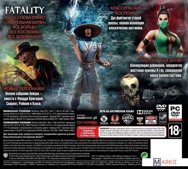 Спустя годы легендарная серия Mortal Kombat возвращается такой, какой ее помнят и ждут тысячи игроков. Это жестокая, кровавая и беспощадная битва не на жизнь, а на смерть, битва, в которой может победить только сильнейший.Столетия понадобились Шао Кану, чтобы одержать верх над Рейденом и его союзниками. Однако перед лицом смерти Рейден все же смог использовать свой последний шанс спасти мир. Он отправил ментальное сообщение самому себе в прошлое, во времена первого турнира, когда силы добра еще были способны уничтожить Шао Кана…Игрокам предстоит принять участие в турнире «Смертельной битвы», узнать истинную историю мира Mortal Kombat и изменить прошлое, чтобы спасти будущее.Особенности:• Сражайтесь за или против героев культовой серии Mortal Kombat, среди которых Рейден, Джонни Кейдж и Скорпион.• Используйте смертоносные и жестокие удары, а также фирменные добивания серии Mortal Kombat — знаменитые Fatality.• Померьтесь силами или вступите в бой плечом к плечу с друзьями в режимах Tag Team, Co-op Arcade и Team Online.• Настолько красочным и кровавым Mortal Kombat еще никогда не был.