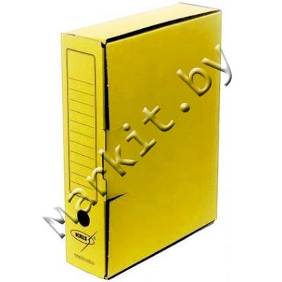 Короб архивный из гофрокартона Kris с замком, корешок 80 мм, 340 x 255 x 80 мм, желтый Код: 32165