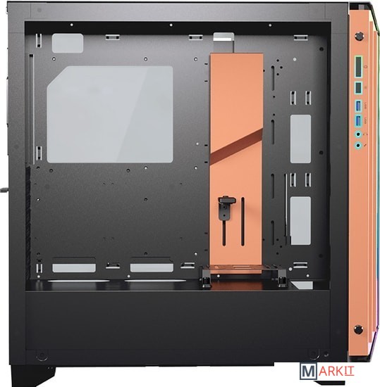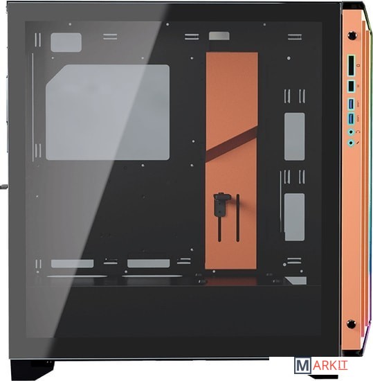 Передняя панель DarkBlader-S выполнена в ассиметричном дизайне из матированного алюминия, что придает корпусу и вашей сборке современный внешний вид.Встроенная кнопка управления подсветкой и LED контроллер обеспечивают корпус DarkBlader-S потрясающими визуальными эффектами. Также корпус поддерживает синхронизацию адресуемой 5V подсветки, что позволяет объединить всю систему единым визуальным стилем.Две боковые панели из закаленного стекла обеспечивают визуальный доступ к вашим топовым компонентам и потрясающей RGB подсветке.Специальные элементы внутри корпуса позволяют спрятать все провода и обеспечить корпус идеальным воздушным потоком, а специальная подставка для видеокарты придает уверенности при использовании самых массивных радиаторов.