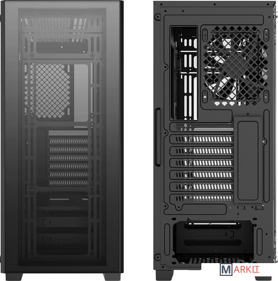 Как и у среднеразмерного башенного корпуса, у MATREXX 50 ADD-RGB 3F достаточно места для установки материнской платы форм-фактора E-ATX. С двумя большими воздухозаборниками и воздухоотводом, оптимизированный воздушный поток гарантирует поддержание низкой температуры компонентов. MATREXX 50 ADD-RGB 3F обеспечивает отличный опыт сборки и эксплуатации конфигурации.Оптимизированная для мощных систем охлаждения организация воздушных потоков обеспечивается большими воздухозаборниками в двух местах на передней панели и отводами воздуха на задней и верхней панелях для поддержания низкой температуры компонентов.Полноразмерная боковая и передняя панели из закаленного двойного стекла толщиной 4 мм придают корпусу уникальный внешний вид для идеальной демонстрации внутреннего устройства конфигурации.Кабельный менеджмент, теперь, — это просто с помощью отделения шириной 210 мм (свободное пространство 24 мм)MATREXX 50 ADD-RGB 3F оснащен кожухом для блока питания, который позволяет скрыть кабели и поддерживать чистоту в системе.
