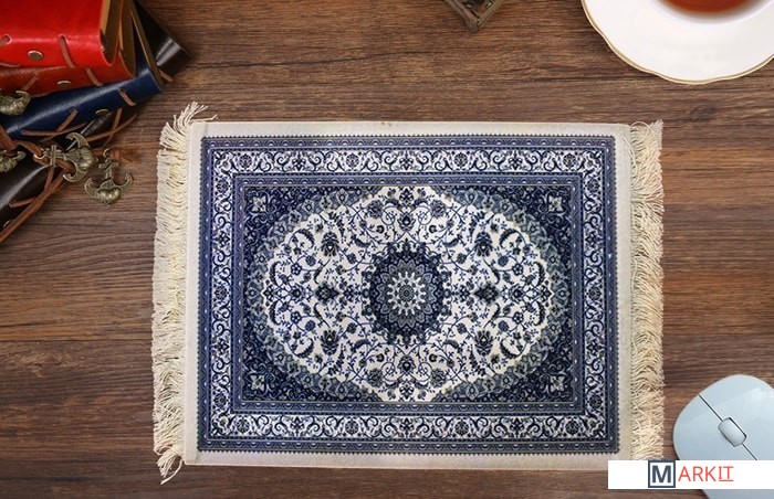Декоративный мини-ковёр из нетканого материала можно использовать не только как коврик для компьютерной мыши, но и в качестве подставки для царапающих поверхность предметов, подложки под вазы, статуэтки и другие украшения интерьера. Не скользящая прорезиненная основа, в точности скопированный классический ковровый узор.