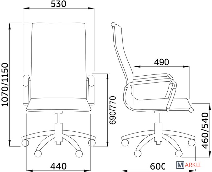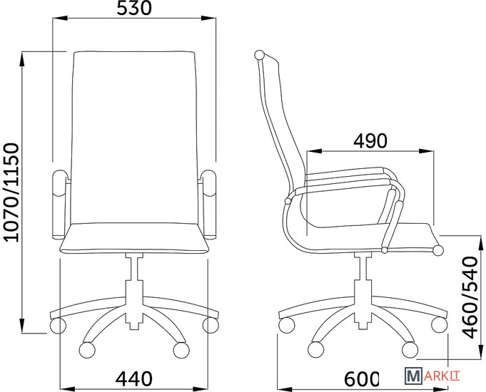 | Высота кресла | 107 — 115 см |
