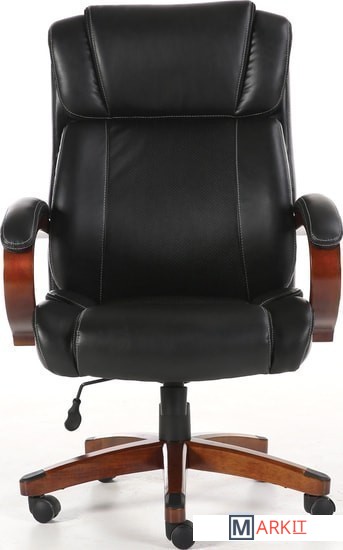 Обивка кресла выполнена из рециклированной кожи - современного материала, созданного из измельченных частиц натуральной кожи. По эластичности и прочности рециклированная кожа максимально близка к натуральной. Материал хорошо пропускает воздух, что положительным образом сказывается на комфорте во время эксплуатаци. Рециклированная кожа износоустойчива, кресло способно сохранять привлекательный внешний вид длительное время.Перфорация в центральной части кресла способствует дополнительной циркуляции воздуха.Плотная набивка, широкие деревянные подлокотники с мягкими накладками, высокая спинка и широкое сиденье с плотной набикой - просторные габариты обеспечивают великолепную эргономику данной модели.Сочетание рециклированной кожи с контрастной отстрочкой и деревянных элементов без сомнений подчеркнут статус своего владельца.
