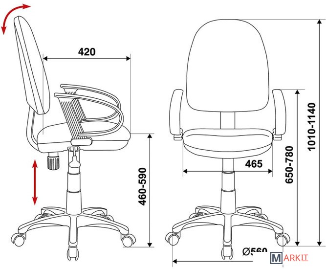 | Регулируемый наклон спинки | ✘ |