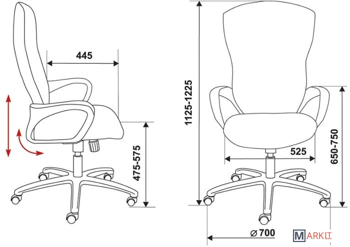 | Регулируемый наклон спинки | ✘ |