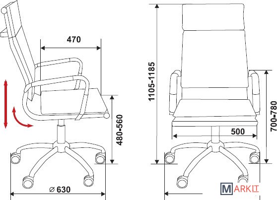 Высота спинки 62.5 см