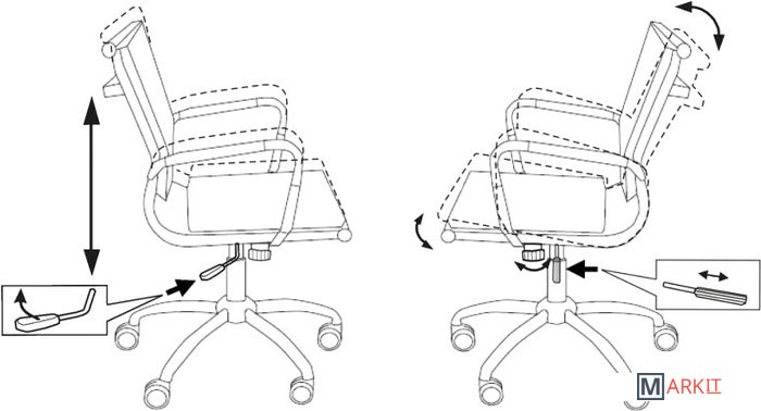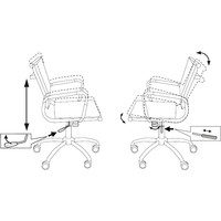 - Низкая спинка- Механизм качания с регулировкой под вес и фиксацией в вертикальном положении- Регулировка высоты (газлифт)- Хромированный металлический каркас, крестовина и подлокотники (с накладками из кожзама)- Ограничение по весу: 120 кг