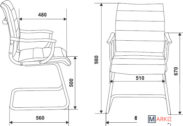 - Хромированный металлический каркас, полозья и подлокотники (с пластиковыми накладками)- Ограничение по весу: 100 кг