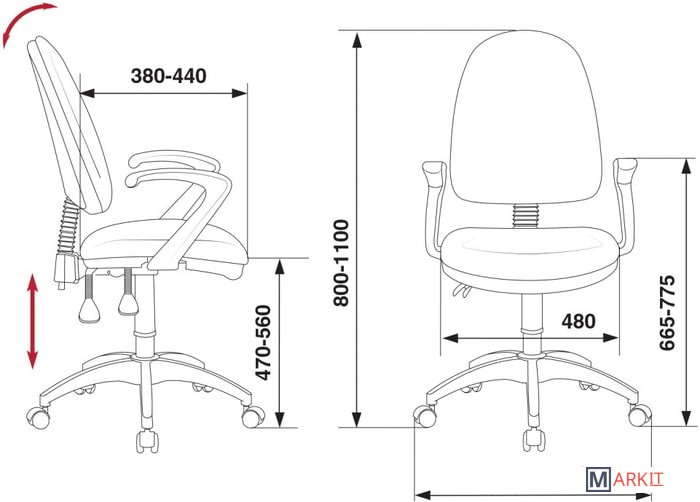 | Регулируемый наклон спинки | ✔ |