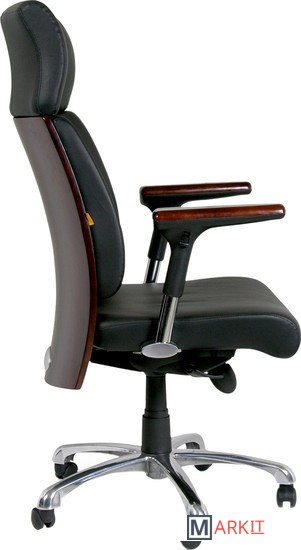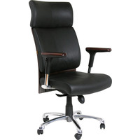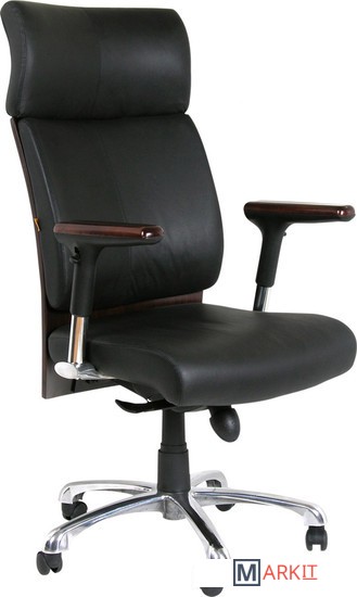 Офисное кресло руководителя черного цвета. В сиденье и спинке кресла используется высококачественный наполнитель. Обивка кресла выполнена из натуральной кожи.