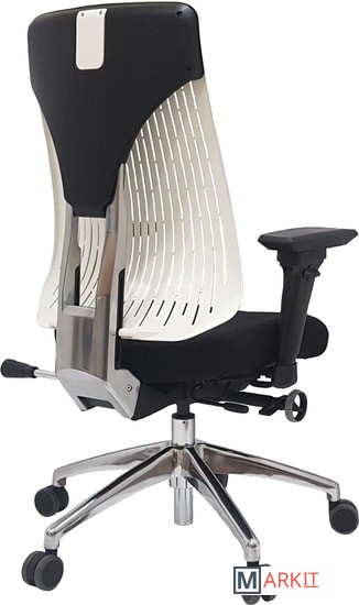 Регулировка спинки:по высоте - храповый механизм (зубчатый) на основе возвратно-вращательного движения; поясничное натяжение (при помощи ручки); наклон и фиксация от 0 до 45°.Спинка изготовлена по новой технологии из эластичного многослойного полимерного материала. Обивка сиденья: ткань